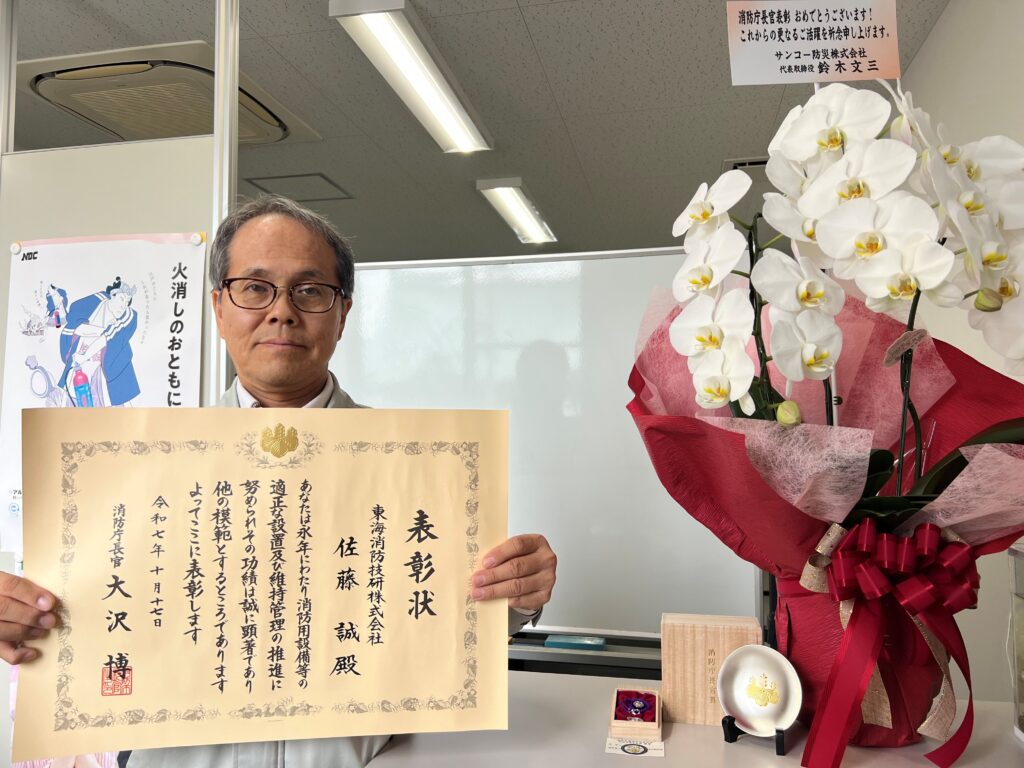 消防庁長官表彰 消防設備保守関係功労者表彰 を受賞いたしました✨