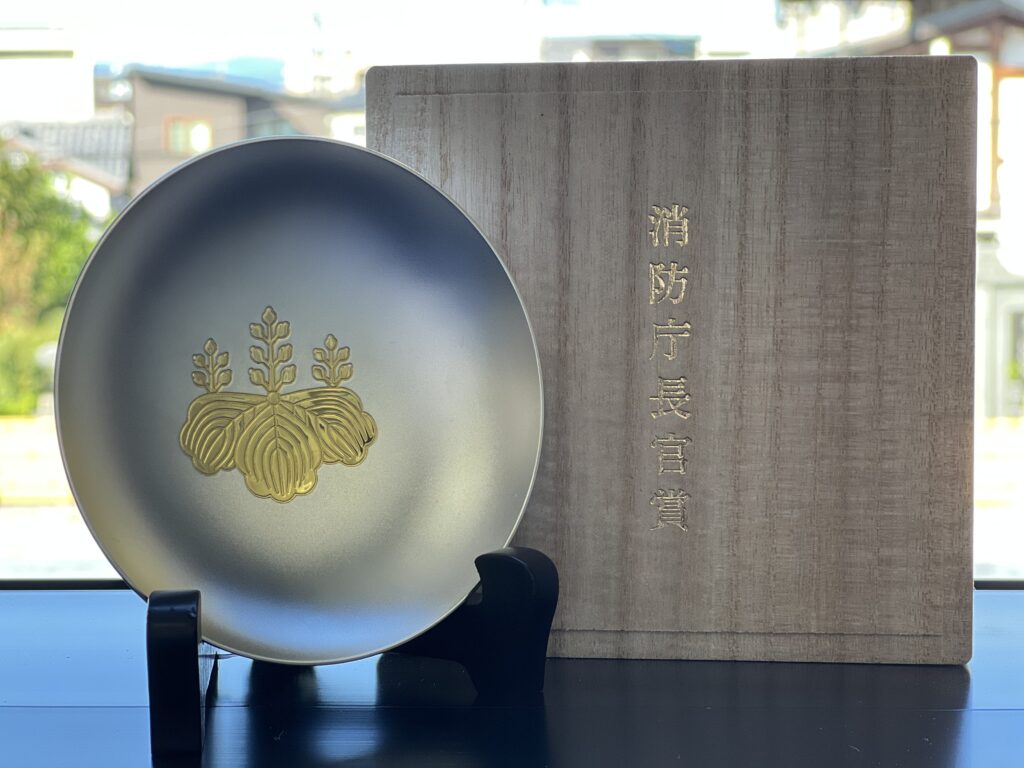 今回の表彰は、消防庁長官 大澤 博 様 より